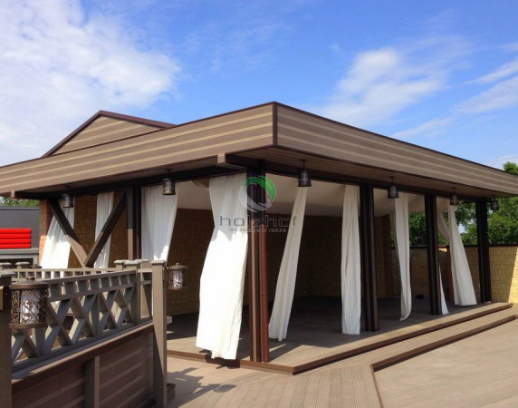 Доска ДПК на эксплуатируемой кровле в ресторане Бали